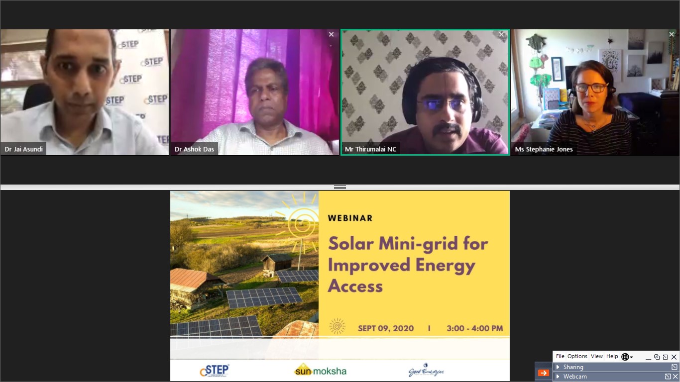 The webinar 'Solar Mini-Grid for Improved Energy Access' was held on 9 September 2020. It presented CSTEP’s Solar Techno-Economic Model for Photovoltaics (CSTEM PV) and discussed technology advancements and opportunities for rural energy access. The event was attended by 114 participants.