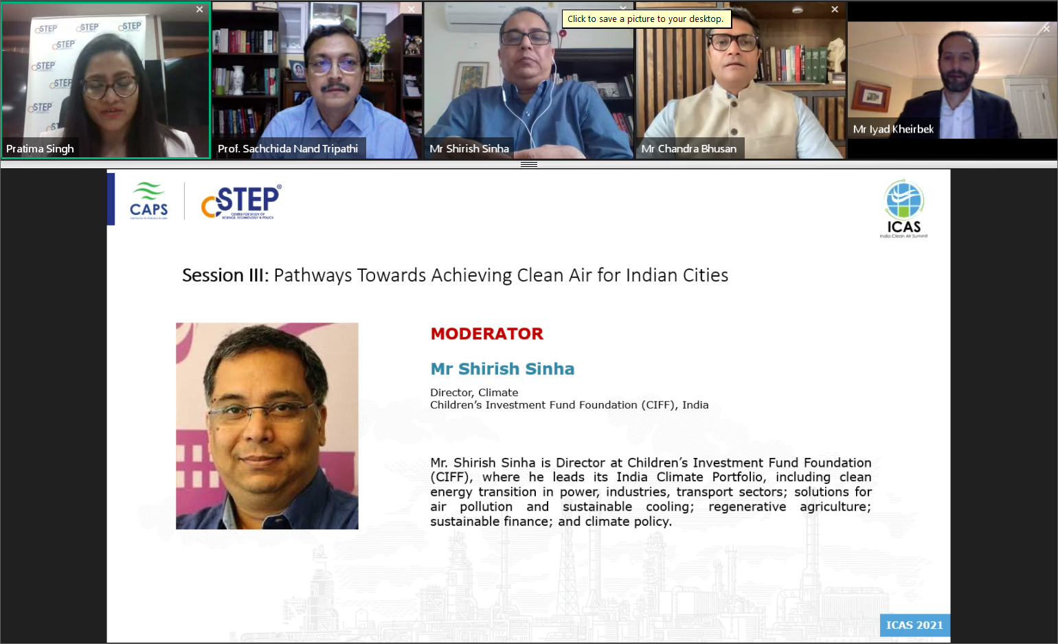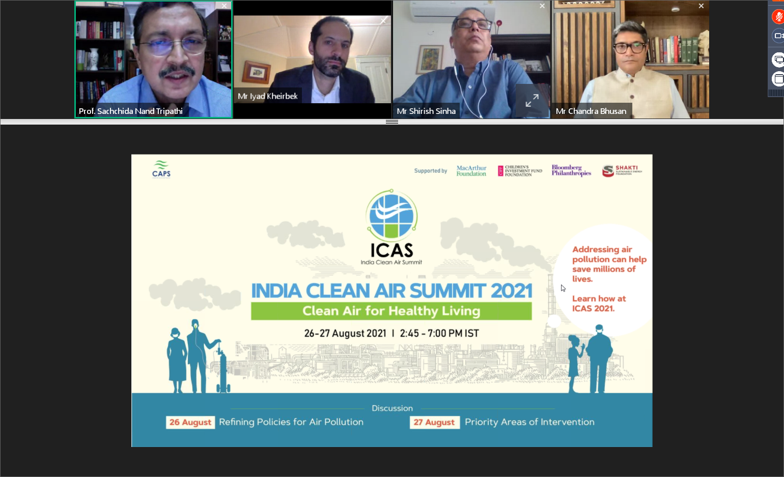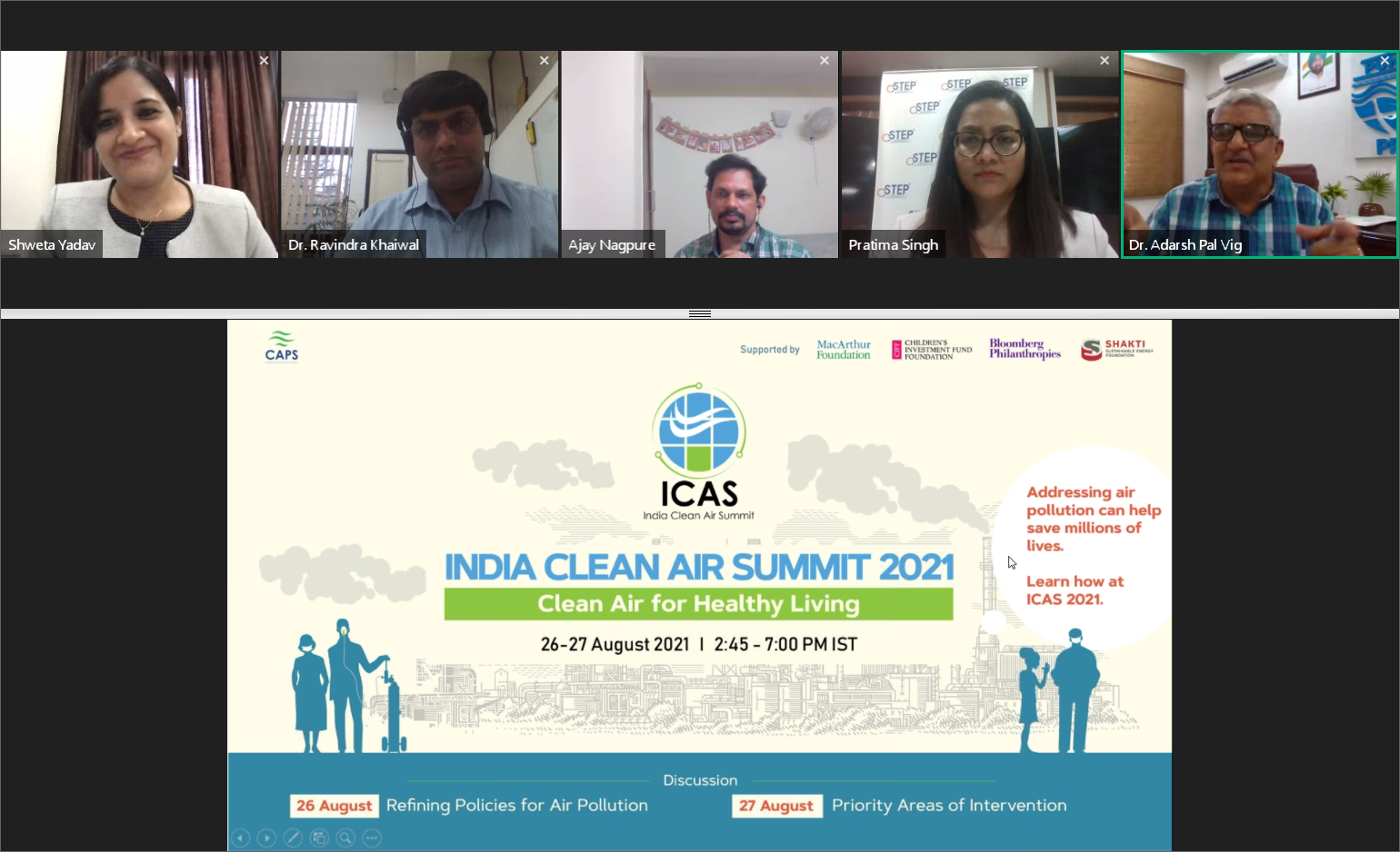 The Centre for Air Pollution Studies (CAPS) at the Center for Study of Science, Technology and Policy organised the third edition of the India Clean Air Summit (ICAS) on 26 and 27 August 2021. The flagship event of CAPS brought together policymakers, industry leaders, scientists, researchers, students, and citizen activists to discuss air pollution and its health linkages.