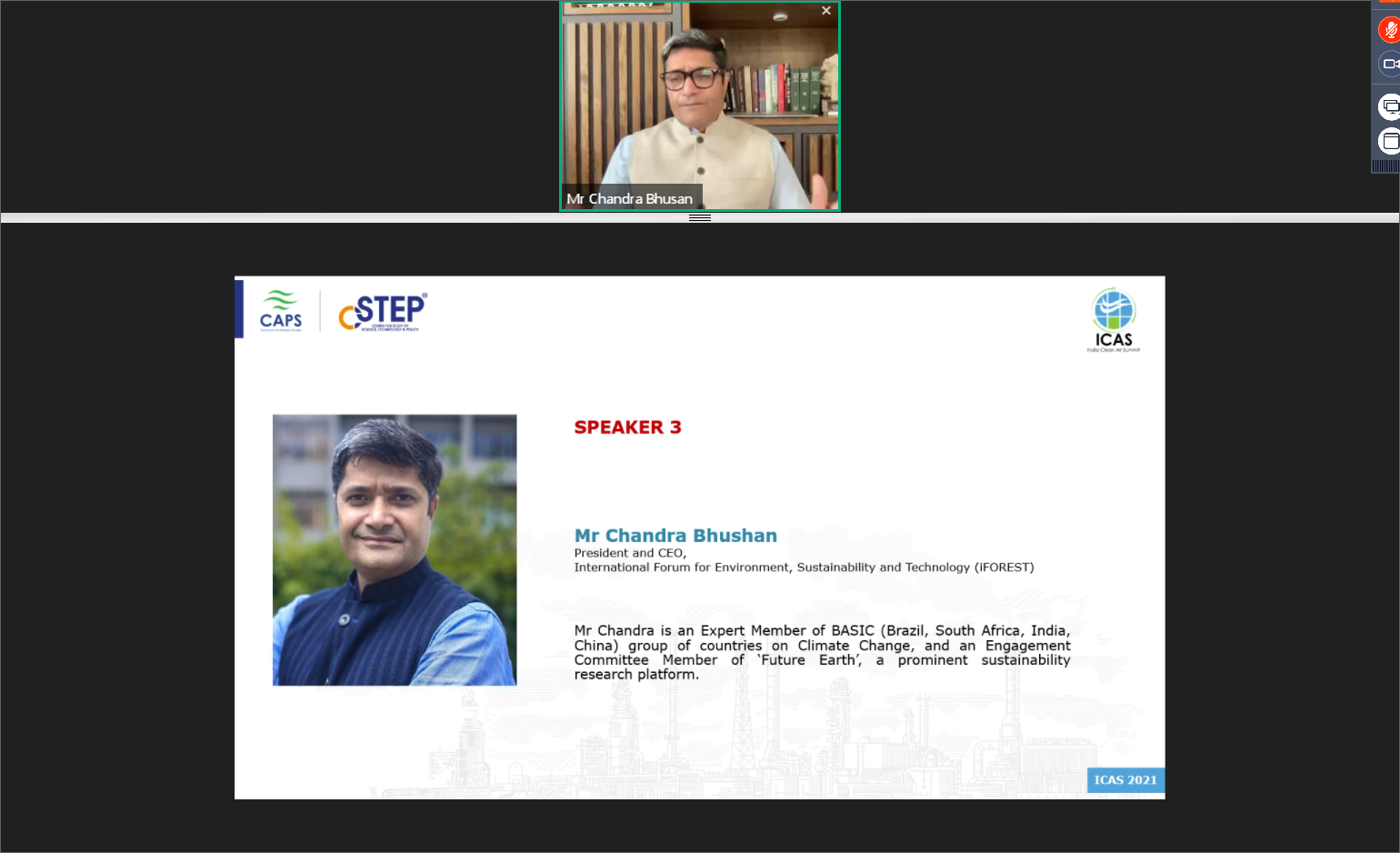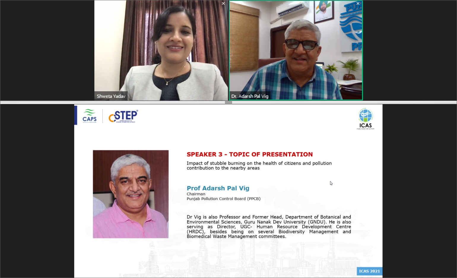 Spread over two days, the virtual summit provided a platform for key stakeholders to engage in debates on various topics connected to air pollution. Divided into themed sessions, the discussions began at 2:45 p.m. in the afternoon and ended at 7:00 p.m. in the evening on both days. ICAS 2021 also had two expert sessions exclusively for college students.