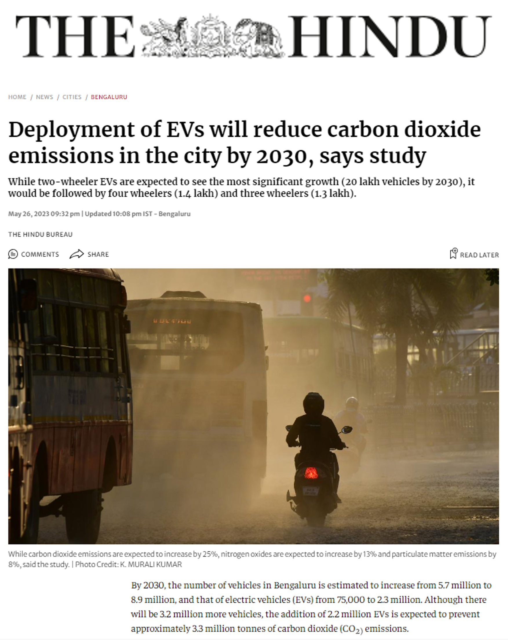 https://www.thehindu.com/news/cities/bangalore/deployment-of-evs-will-reduce-carbon-dioxide-emissions-in-the-city-by-2030-says-study/article66896876.ece