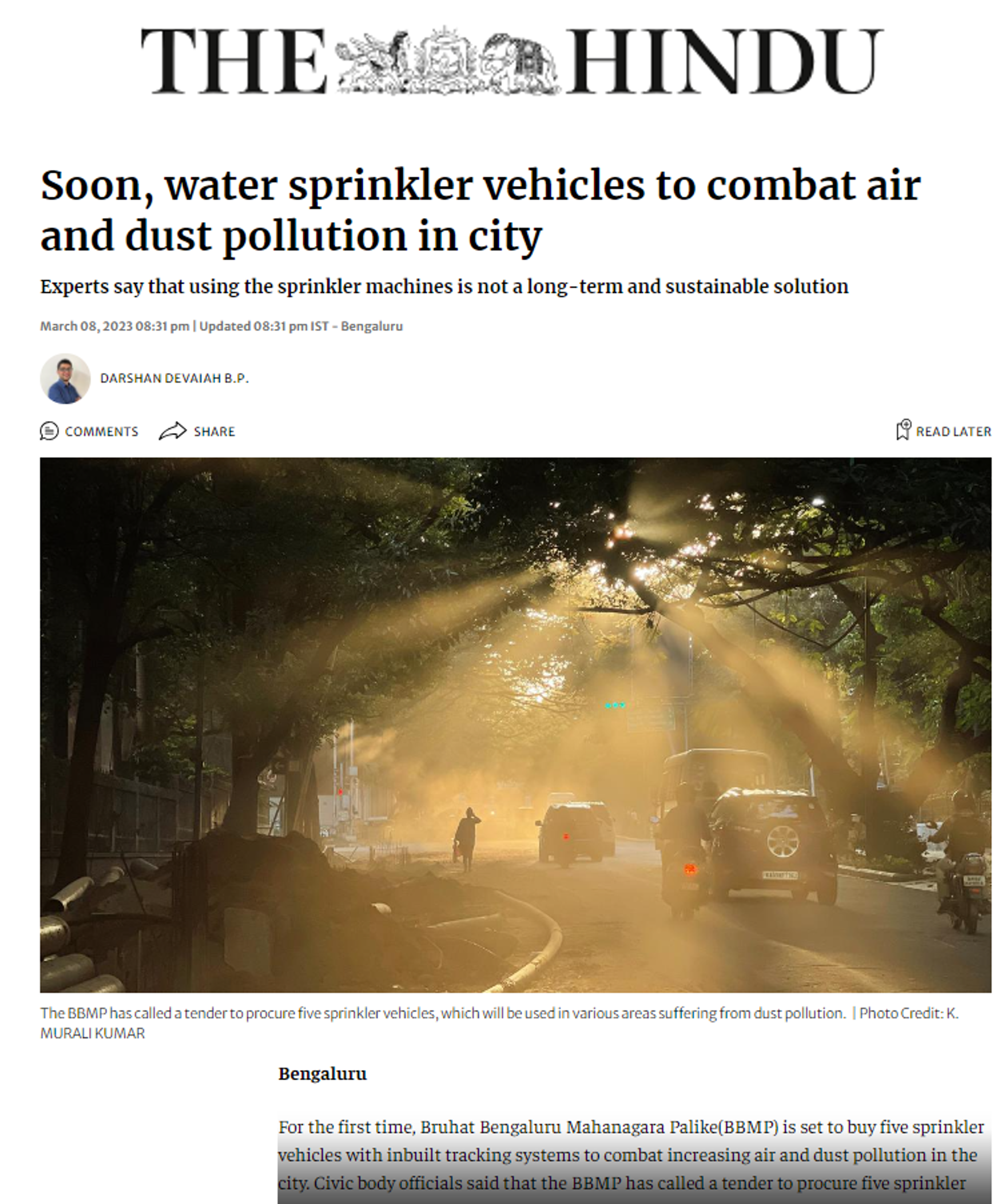 https://www.thehindu.com/news/national/karnataka/soon-water-sprinkler-vehicles-to-combat-air-and-dust-pollution-in-city/article66595672.ece